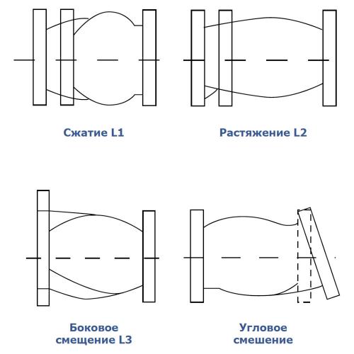 Недопустима одновременная работа компенсатора на растяжение и сдвиг