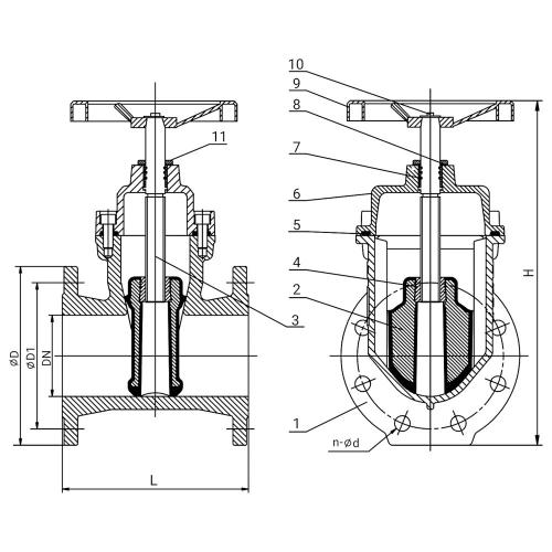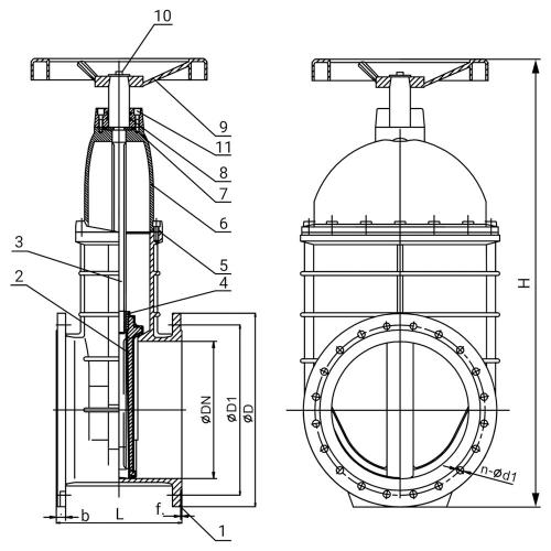 | Описание | Чугунная задвижка с обрезиненным клином и невыдвижным штоком фланцевая |